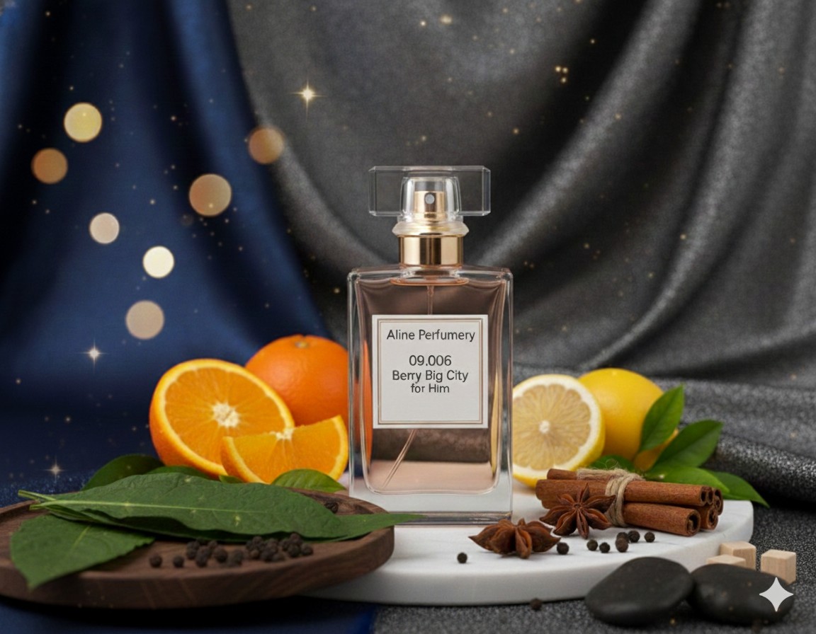 Το άρωμά μας ‘09.006 Berry Big City for Him’ είναι εμπνευσμένο από τις οσφρητικές νότες της ‘Burberry London for Him’, προσφέροντας μια μοναδική αρωματική εμπειρία που αποπνέει αστική κομψότητα, δυναμισμό και αυτοπεποίθηση.