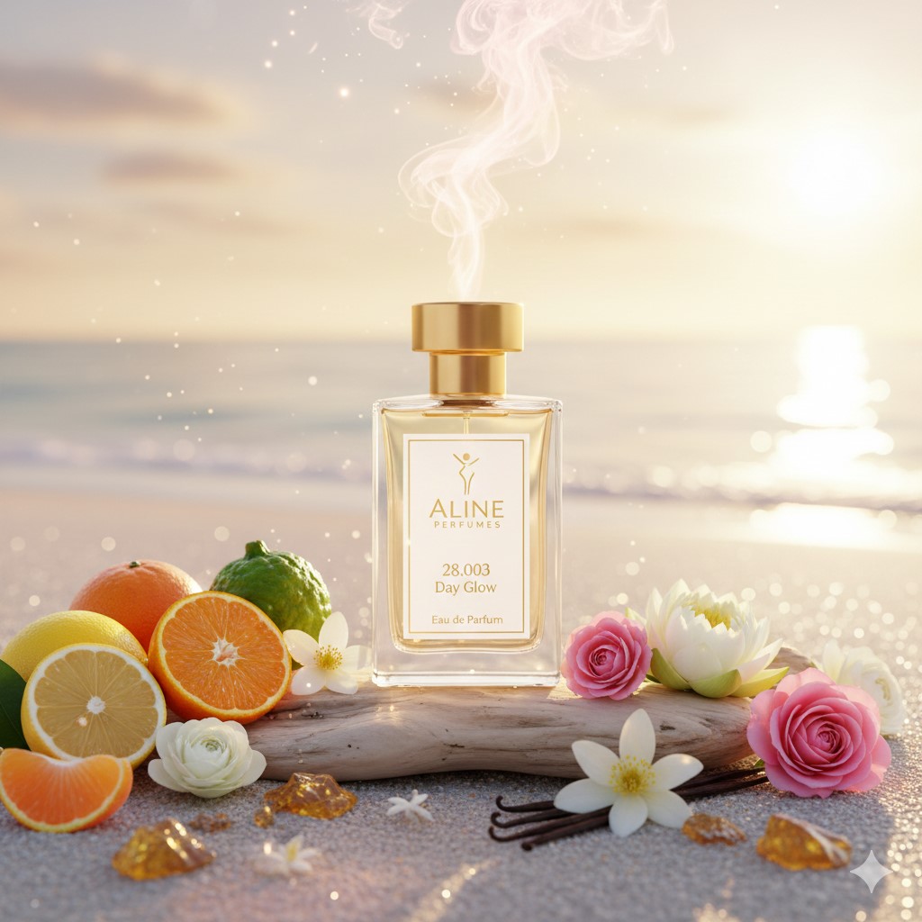 Το άρωμα ‘28.003 Day Glow’ είναι εμπνευσμένο απο τις οσφρητικές νότες του ‘Dolce’ & Gabbana by Dolce & Gabbana, προσφέροντας μια αρωματική εμπειρία που αποπνέει φρεσκάδα, θηλυκότητα και μια αίσθηση εορταστικής διάθεσης.